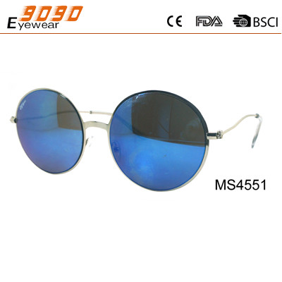 Unisex round fashion sunglasses with blue mirror lens ,made of metal frame Images |